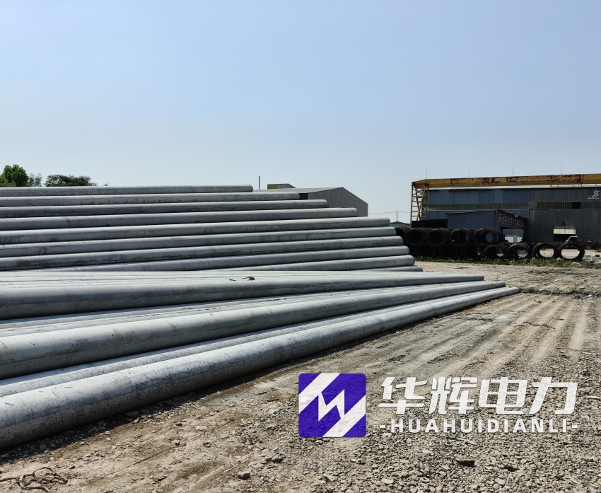 8米肥东水泥电线杆通常采用钢筋混凝土离心成型工艺,杆体呈锥形结构,梢径150mm-190mm,根径230mm-270mm,壁厚40mm-50mm。根据标准GB/T4623-2014,产品混凝土强度等级不低于C40,主筋采用HRB400级钢筋,配筋量根据抗裂弯矩要求设计,标准抗裂弯矩可达12-18kN·m,破坏弯矩不小于24kN·m。杆体重量约0.5-0.8吨,运输安装便捷,适合人工或小型机械施工。